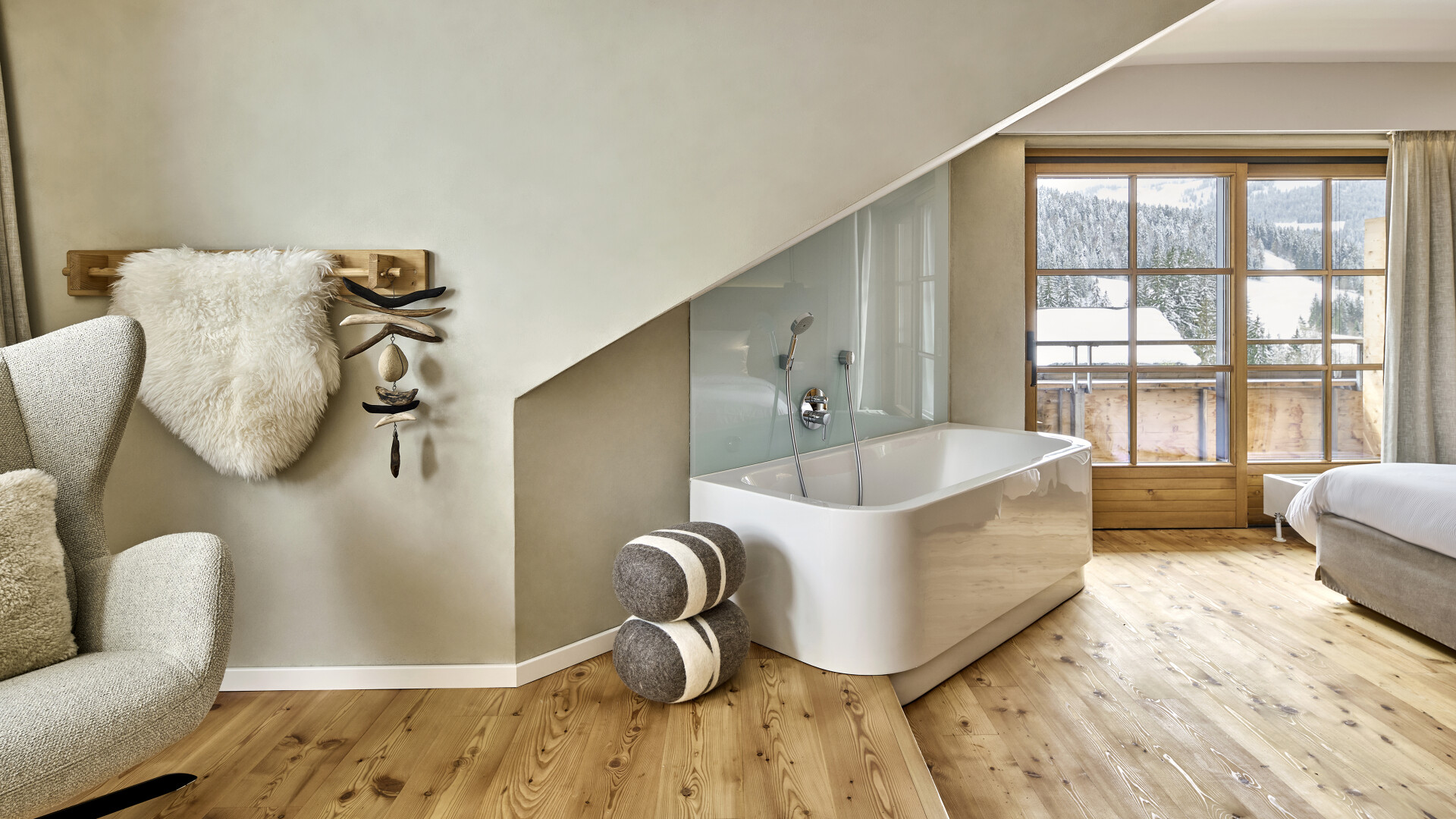 Hier gibt es keine Ablenkung. Kein Überfluss, der den Geist stresst. Nur klare Linien und wohlige Wärme. Das Bett als Insel. Der Blick aus dem Fenster als letztes Bild vor dem Traum. Die Stille der Berge legt sich über das Haus. Und über Sie. Geborgenheit. Sicherheit. Ein tiefer, traumloser Schlaf, der die Batterien auflädt. Damit Sie am nächsten Morgen erwachen. Klar. Erfrischt. Und bereit für neue IMPULSE.